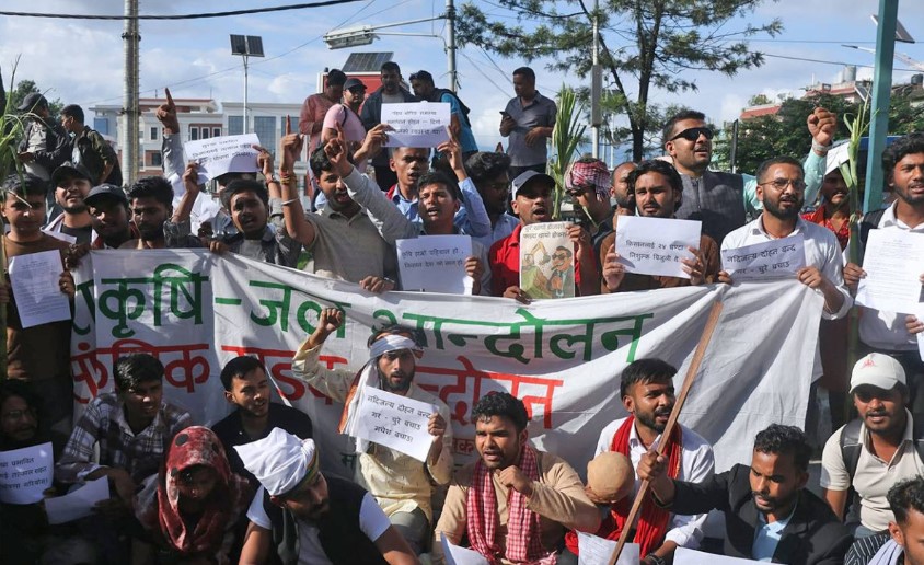 मधेश कृषि–जल आन्दोलन संघर्ष समितिको ब्यानरमा युवाहरू भेला भएका थिए ।