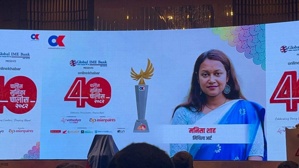 काठमाडौँ । मधेश प्रदेशको सर्लाही जिल्ला, हरिपुरबा नगरपालिका – ६ निवासी प्रख्यात मिथिला कलाकार मनिषा साह यादव प्रतिष्ठित ‘अनलाइनखबर ४० अन्डर ४०’ सूचीमा स्थान बनाउन सफल भएकी छन्।