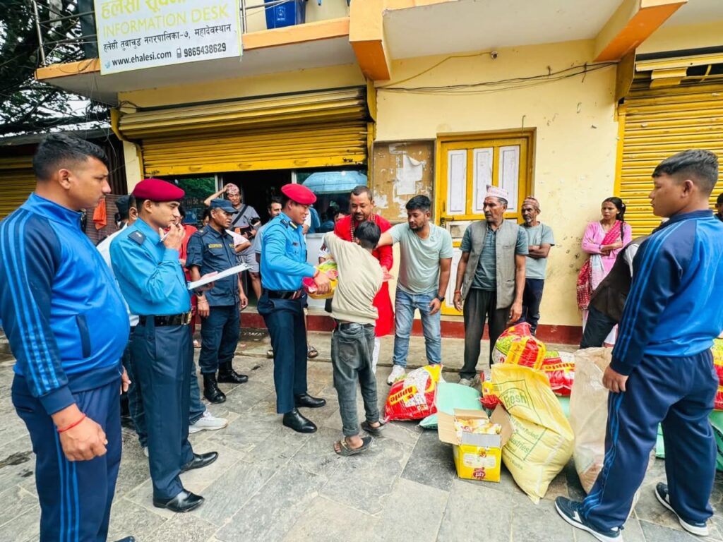 सहयोग स्वरूप ४० बोरा चामल, ४० किलो दाल, ४० प्याकेट नुन, खाना पकाउने तेलसहित अन्य आवश्यक खाद्य सामग्रीहरू वितरण गरिएको इलाका प्रहरी कार्यालय हलेसीले जनाएको छ। यी सामग्रीहरूले मन्दिर परिसरमा आश्रय लिई भक्तजनसँग सहायता मागेर जीविका चलाउँदै आएका व्यक्तिहरूको तत्कालीन खाद्य आवश्यकता पूरा गर्ने अपेक्षा गरिएको छ।